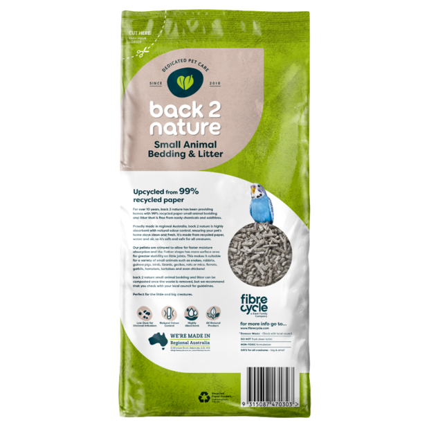 A recycled paper based small animal bedding and litter designed to keep delicate feet dry, stable and comfortable. With flatter ridged pellets that hold moisture rather than letting it sit on the surface, this bedding supports healthier paw contact and reduces irritation for small animals. Low dust and sterile at manufacture, making it a cleaner, safer choice for sensitive pets.