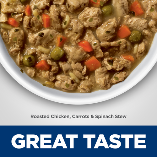 Made with natural, purposeful ingredients, high-quality protein, and clinically proven antioxidants, Healthy Cuisine stews are easy to digest and ideal for adult dogs at every life stage. Serve as a complete meal or mix with Hill’s Science Diet dry food for variety.