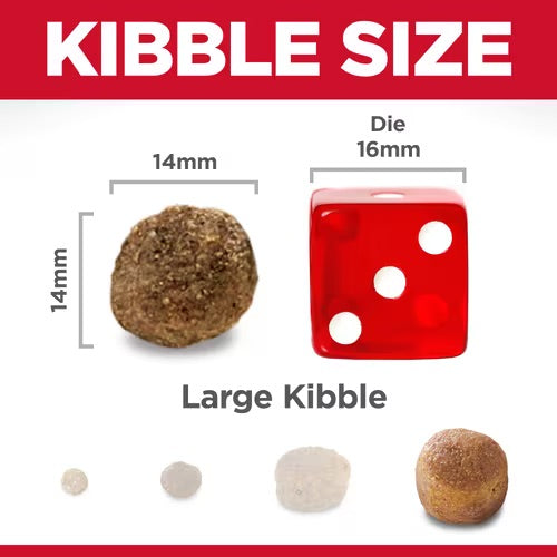 With natural sources of glucosamine and chondroitin, this recipe helps maintain healthy joints and mobility, essential for large breeds. The inclusion of ActivBiome+ Multi-Benefit prebiotic fibre blend supports optimal digestion, immune health and organ function, while omega-6 fatty acids and vitamin E keep the skin healthy and the coat shiny. Backed by decades of Hill’s scientific research and made with globally sourced, premium-quality ingredients, this food gives your large breed dog the nutrition they need for a long, happy and healthy life.