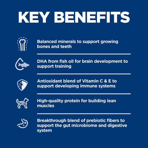 Specially developed by Hill’s team of nutritionists and backed by decades of research, it’s crafted to fuel rapid growth, support brain and eye development, and nourish skin and coat — while being easy to digest and irresistibly tasty for your pup.