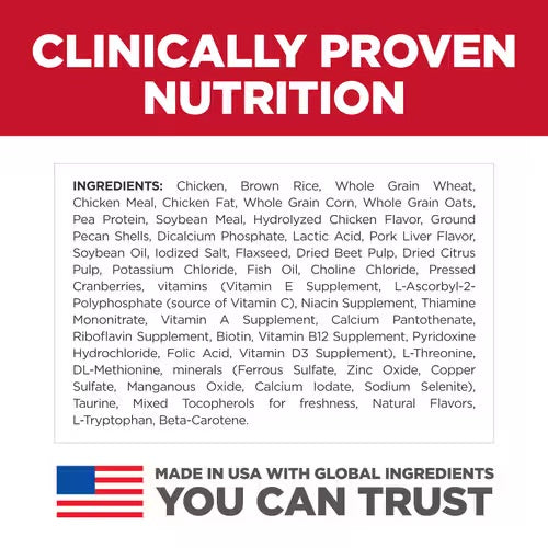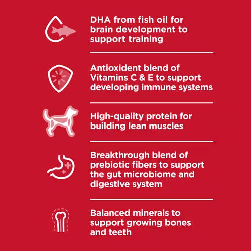 Formulated with DHA from fish oil for brain and eye development, high-quality protein for lean muscle growth, and a breakthrough prebiotic fibre blend for digestive health, this diet provides complete and balanced nutrition. It also contains balanced minerals for strong bones and teeth, plus Hill’s exclusive Small & Mini antioxidant blend to support a healthy immune system.