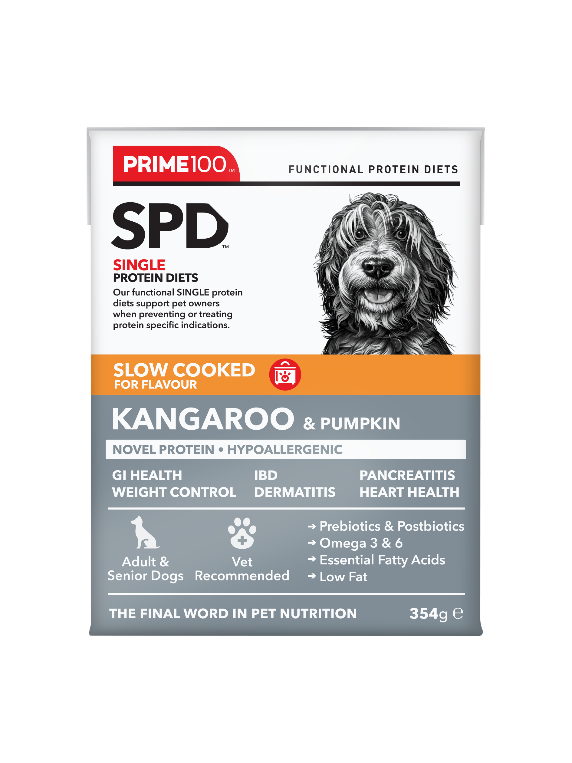 Prime100 SPD Slow Cooked – Kangaroo & Pumpkin is an excellent choice for dogs requiring a gentle, balanced diet that supports digestion and provides essential nutrients for a healthy, happy life.